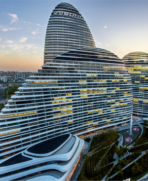 望京SOHO位于北京市朝陽區望京街與阜安西路交叉路口,由世界著名建筑師扎哈 · 哈迪德(Zaha Hadid)擔綱總設計師,占地面積115,392平...
